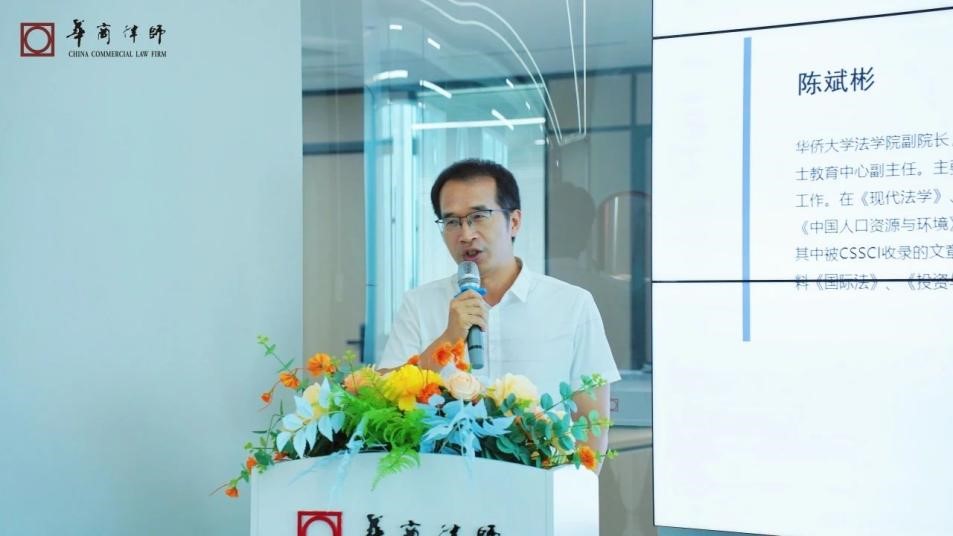 研讨会由华侨大学法学院副院长陈斌彬教授主持并致开场词,由对外经济贸易大学法学院伏军教授、华商总所执行合伙人唐华英律师、华商总所合伙人储婷婷律师、厦门大学知识产权研究院王俊副教授、厦门金融司法协同中心金融审判(一审)团队负责人林鸿法官主讲。